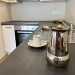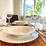Bright Studio Apartment With Free Private Parking俯瞰着山脉,仅需19分钟即可到达梅拉诺的温泉大楼. 此外,厨房配有电热水壶,咖啡壶/茶壶 和烤箱.